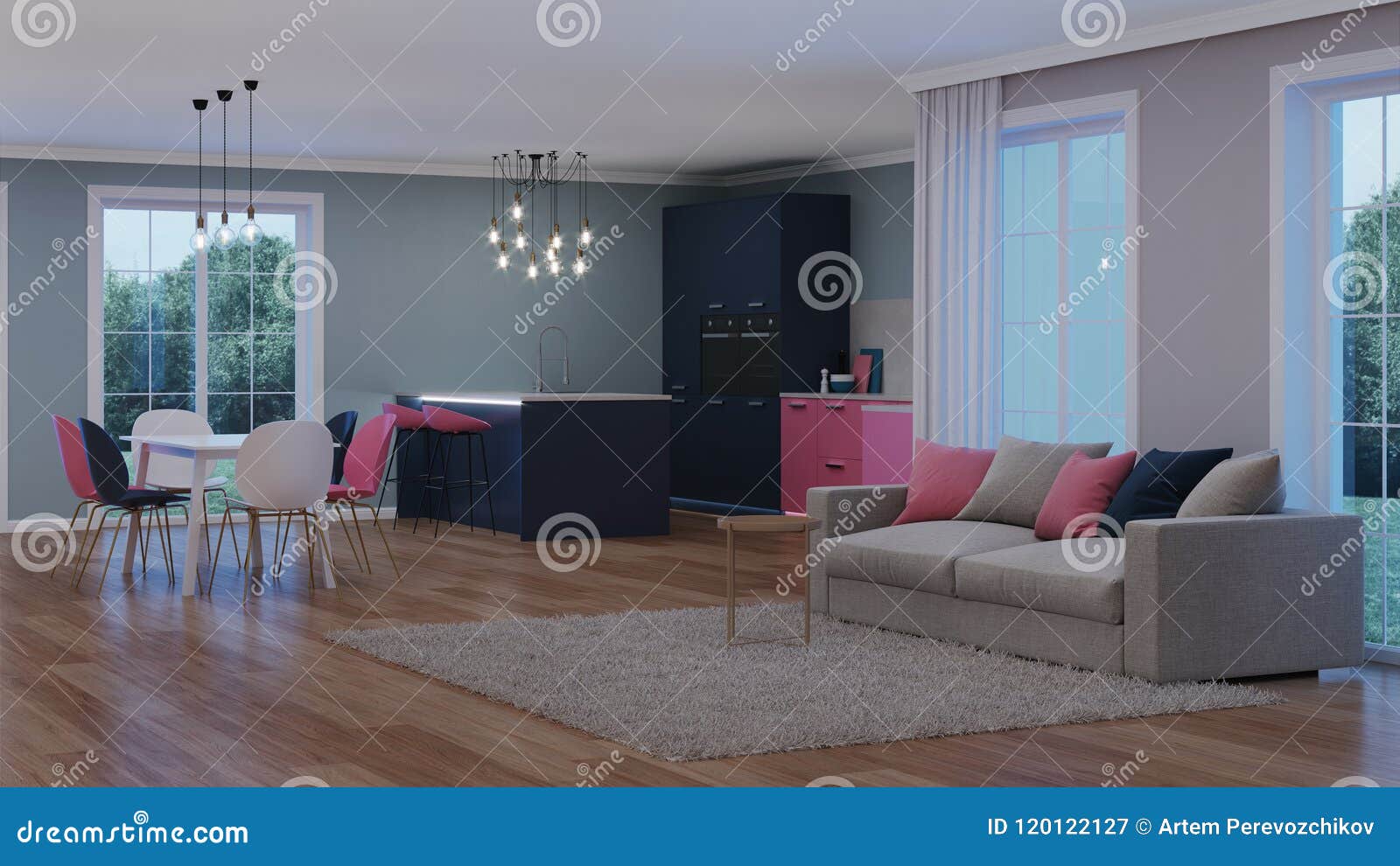 Interior Moderno Da Casa Cozinha Cor De Rosa Ilustracao Stock