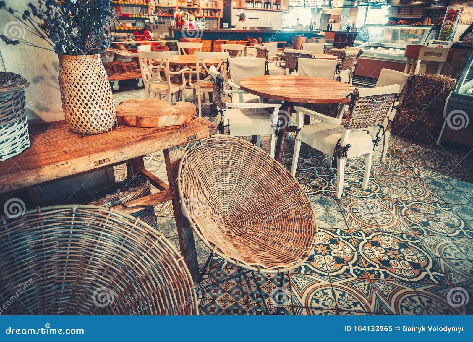 Interior Simples Moderno Do Cafe Com Mobilia De Madeira Imagem De