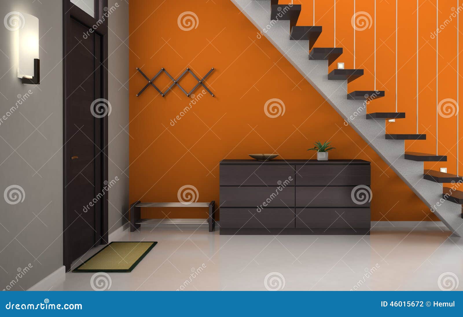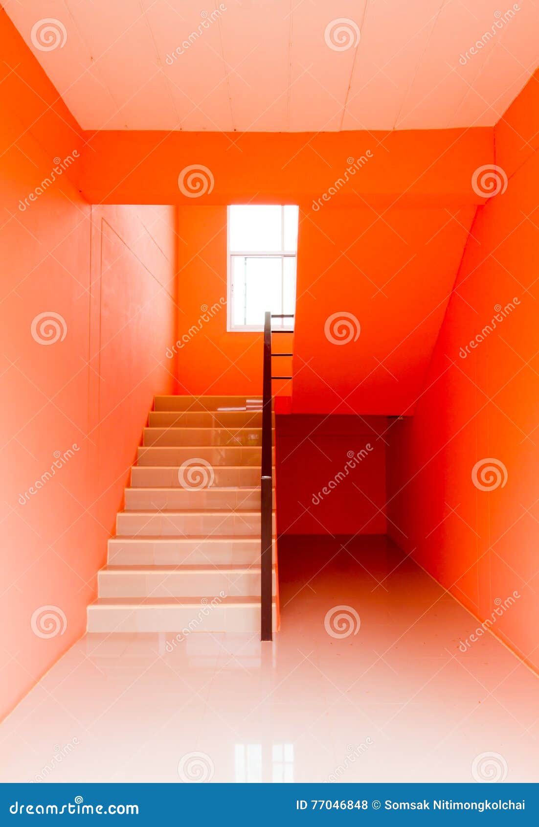 Corredor Com Parede E A Escada Alaranjadas Foto De Stock Imagem De Corredor Escada 46015672
