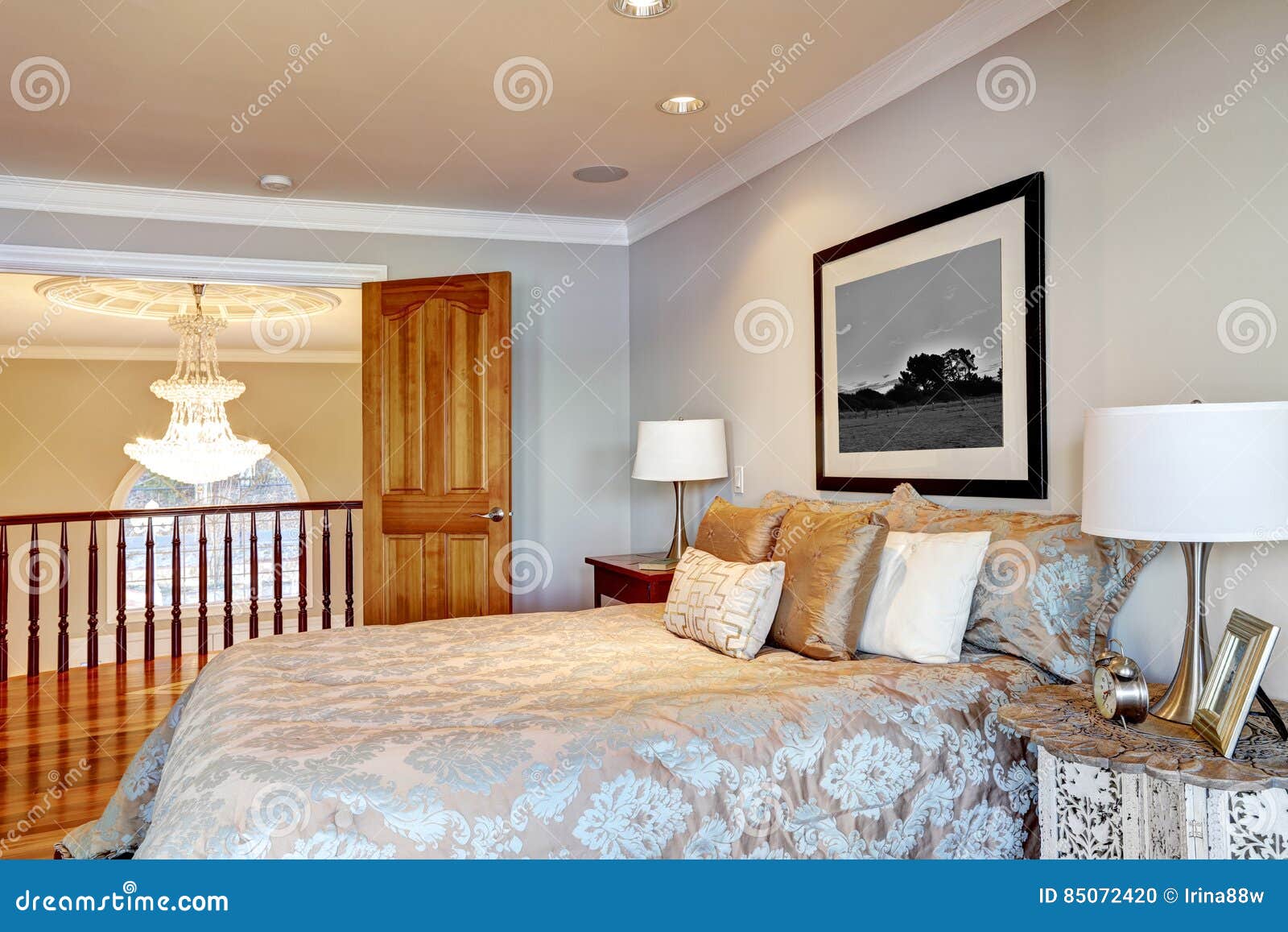 Interior Chique Do Quarto Principal Com Cama De Rainha Foto De