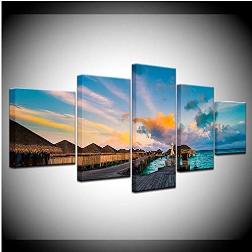 Siyse Pintura Em Tela Chale A Beira Mar Mar Azul Oceano 5 Pecas
