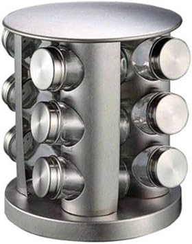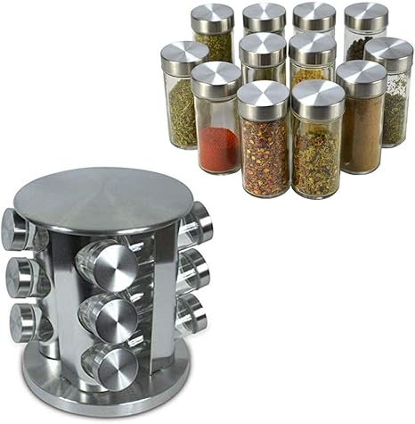 Porta Condimento Tempero Base Inox Vidro Com 12 Potinhos Gira