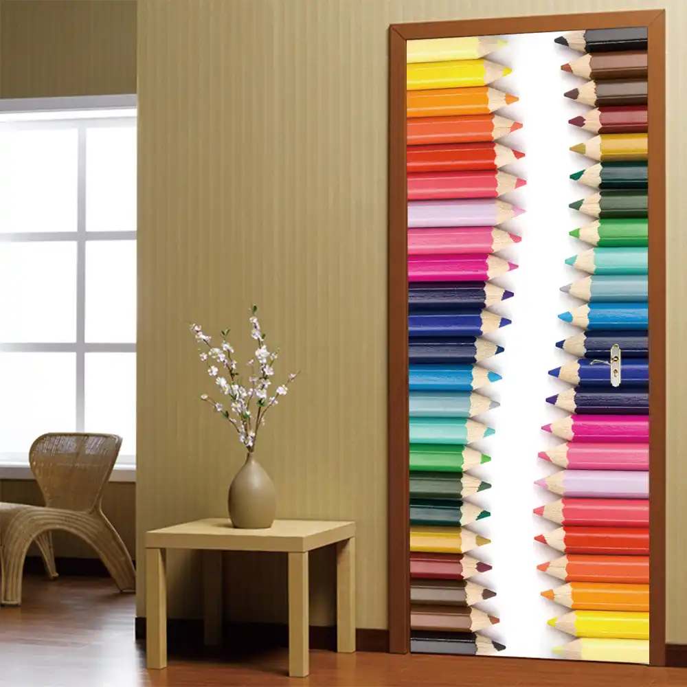 3d Adesivo Cor Lapis Mosaico Porta Adesivo De Parede 2 Pcs 77